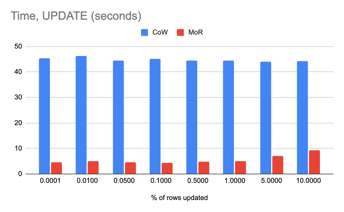 The UPDATE command now supports writing Deletion Vectors (DVs). This will bring up to 10x speed-up for UPDATE operations on Delta tables, especially point updates. Refer to Delta Lake PR 1942 for more details.
