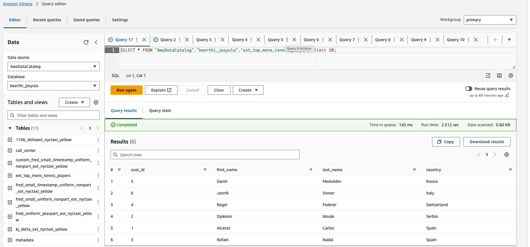 You can also easily query this Delta table with AWS Athena. See the following example: