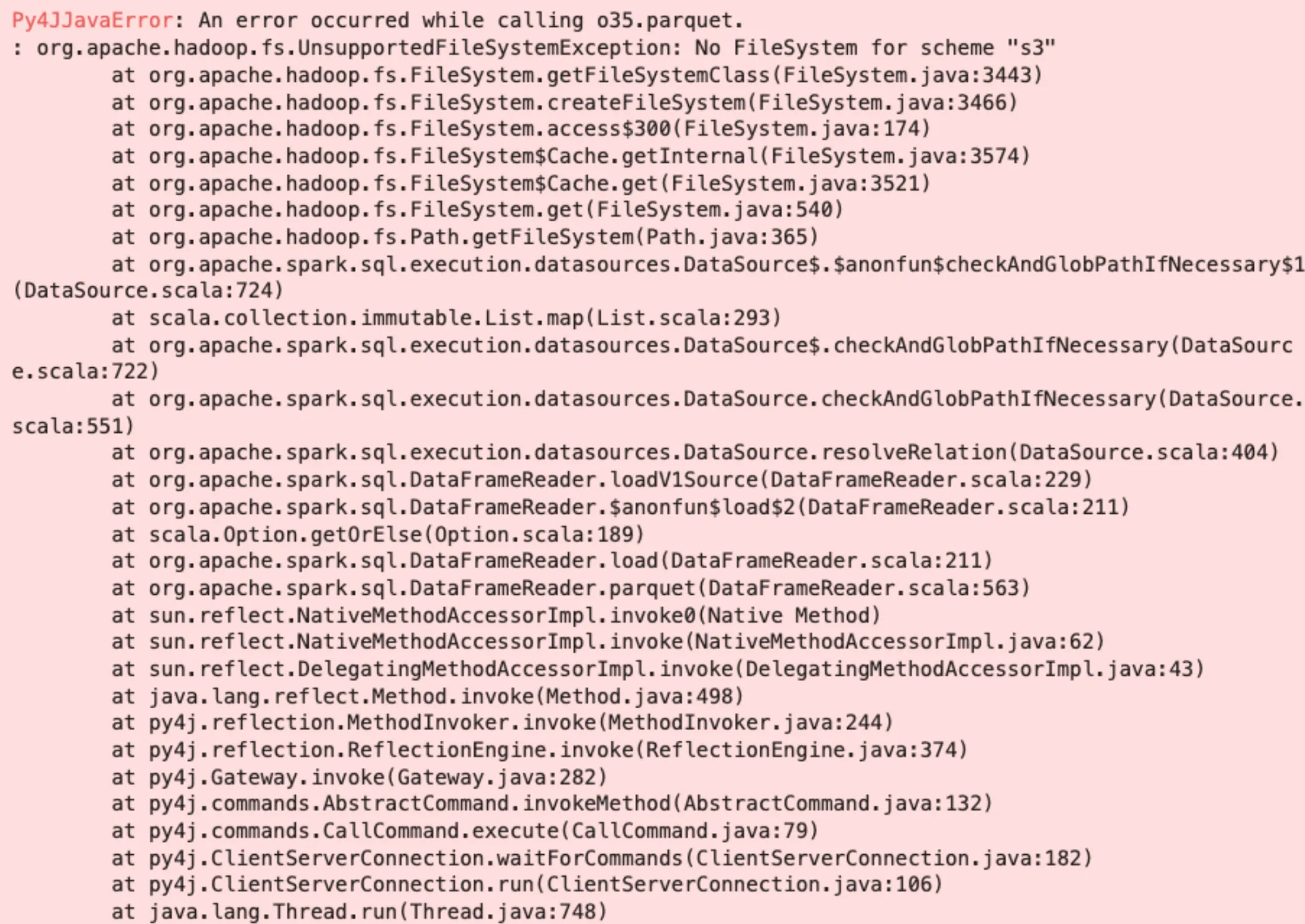 Py4JJavaError: An error occurred while calling o35.parquet.